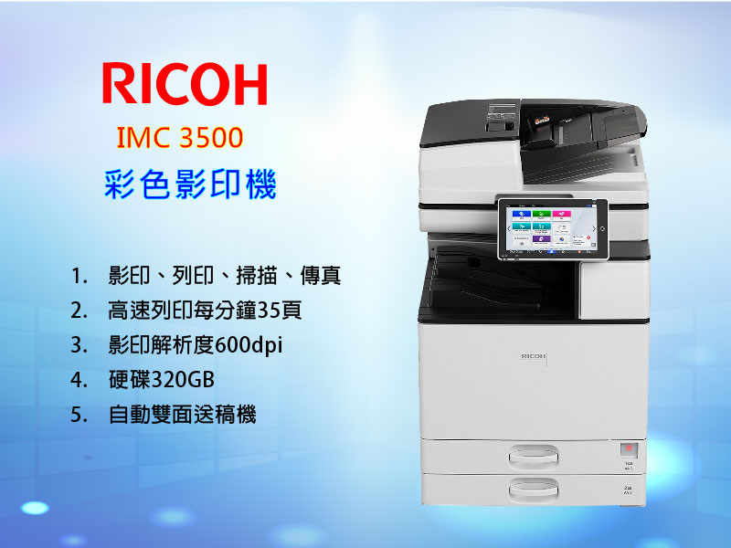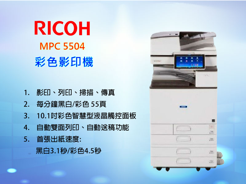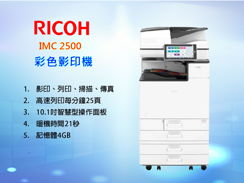 辦公室最佳首選,各式多功能數位黑白/彩色影印機出租。 每天只要50元起即可享受高規格事務機具備影印/列印/掃描/傳真…等功能,於活動期間,租賃指定複合式影印機立即享有免費搭配EPSON彩色噴墨印表機,數量有限要買要快!